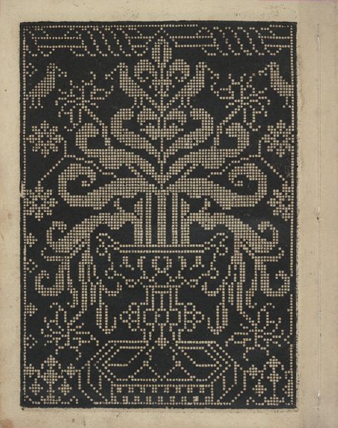 Editor: So, this is a page from *Libbretto nouellamete composto per maestro Domenico da Sera...lauorare di ogni sorte di punti*, created by Domenico da Sera in 1532. It's a woodcut print, and I'm immediately struck by the dense, almost pixelated patterns. What can you tell me about this work? Curator: Well, let’s think about the context. This isn't high art meant for a gallery; it's a pattern book. Its materiality speaks to a practical function: to disseminate designs for needlework. The woodcut medium is key—it's relatively inexpensive and allows for mass production of these designs, making intricate patterns accessible to a wider range of artisans and craftspeople. Think about the labour involved, both in creating the original designs and then in their reproduction via woodcut, and then, of course, in the needlework itself. Editor: So it blurs the lines between art and craft then? Curator: Exactly. This challenges our traditional art historical hierarchy. Instead of focusing solely on the "genius" of the artist, we look at the entire production process, from Domenico da Sera's initial designs to the many hands that would translate them into textile works. We have to also consider how these pattern books democratized design, impacting the quality and availability of textiles in the marketplace. Where was this pattern reproduced? Who bought it? What materials would have been readily available? Editor: I never really considered how prints could affect the economics of textile production! So this one print really encapsulates labor, accessibility, and consumption? Curator: Precisely. It invites us to consider how printed images mediated not only the aesthetics but also the social and economic realities of Renaissance life. It reframes art history as a history of making, marketing, and materiality. Editor: I’ll definitely think differently about art production from now on. Thanks! Curator: My pleasure, thinking about all the labor definitely reshapes my impressions too.
