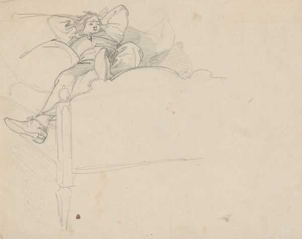 Editor: We’re looking at "Saskia Lying in Bed," a drawing by Rembrandt van Rijn, circa 1638. It’s rendered in brown ink, and you can see the loose, gestural quality of the lines. It feels very intimate and personal, a private moment captured. What catches your eye when you look at this piece? Curator: The materiality of this work speaks volumes. We see the directness of the ink on paper, seemingly unmediated. Consider the societal pressures around depictions of women at this time. Yet here, we glimpse Saskia, Rembrandt’s wife, in repose. This wasn't created to be hung in a grand hall; its function was something more personal, perhaps a study, a memento, or an act of love. What implications does that have on how we perceive it? Editor: That’s fascinating! It makes me wonder about the accessibility of the materials themselves. Was ink readily available? What kind of paper was used? It adds another layer to thinking about who could create art and under what circumstances. Curator: Precisely. The ready availability of these materials shifts our understanding of artistic production. Rembrandt wasn't just some genius touched by God. He had access to material, labor, and a space to create. Think about how the economic landscape shaped not just what he could create, but also what we could later see and interpret. Are we, by focusing on individual genius, obscuring these very real production processes? Editor: That’s a very important point. I had not considered the role of material availability and its relationship to art-making until now. Thank you. Curator: It forces us to rethink what constitutes "high" art and the often obscured role of material conditions. Always consider the processes.