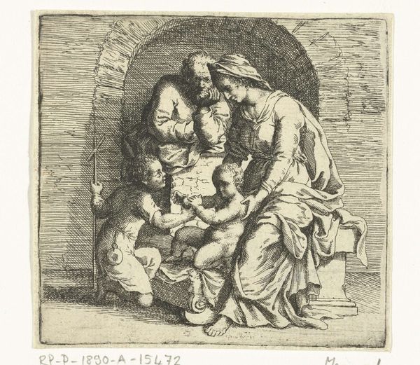 This print, Maria met het Christuskind en Johannes de Doper, was made by Johannes Panneels using an engraving technique. The matrix, likely a copper plate, was incised using a tool called a burin. If you look closely, you can see how the network of lines creates tone and texture. The density and direction of these lines define the forms, giving depth to the figures of Mary, Christ, and John the Baptist. The quality of the impression, the ink, and the paper all contribute to the final image. Prints like this played a crucial role in disseminating images and ideas in early modern Europe. Unlike a unique painting or sculpture, prints could be reproduced and distributed widely. This made art more accessible to a broader audience, beyond the wealthy elite. Yet, the labor involved in creating the matrix should not be forgotten. The engraver's skill, time, and effort are embedded in every line. So, next time you look at a print, remember the many hands that brought it into being.