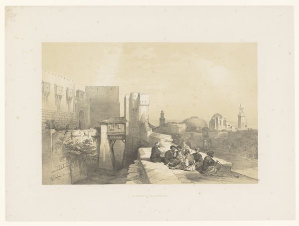 Joseph Thürmer’s Eine Portikus dorischer Ordnung in Athen captures a street scene dominated by a large, classical portico, rendered in shades of gray wash. The composition is striking, with the imposing structure of the portico looming over the more modest buildings and figures below. The artist’s precise lines and attention to detail draw your eye, emphasizing the geometric forms and architectural elements. The contrast between the classical grandeur of the portico and the everyday life unfolding beneath it presents an interesting tension. Thürmer seems to be exploring the relationship between past and present, structure and decay, and the imposing weight of history on the present. The meticulous rendering of the classical form invites a semiotic reading of how architectural symbols convey cultural values and power. Notice how the portico’s solidity is juxtaposed with the softer, more fluid rendering of the human figures and the surrounding environment. This visual contrast invites us to consider how classical ideals are mediated and re-interpreted through the lens of contemporary experience.