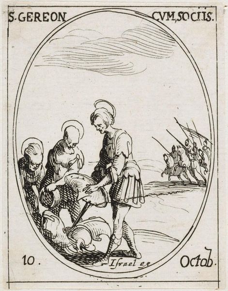 Curator: This is an engraving of Margaret Finch, "Queen of the Gypsies at Norwood," by Henry Roberts, dating to around the mid-18th century. Editor: It’s stark, isn’t it? The tonal range is limited, almost monochromatic, but the textures are quite rich. The details of the face pull you in. Curator: She was a real figure, seen as a leader within a Romani community. The pipe she smokes and the cave setting contribute to an image of alternative knowledge. Editor: The dogs, one alert in her arms, the other passively at her feet, they mirror her relationship with the viewer. She is in command and in her own element. Curator: Exactly, the symbols tell a story of cultural resistance and the endurance of tradition despite social marginalization. It’s a powerful statement. Editor: Yes, the composition itself makes her the undisputed focal point, an emblem of resilience rendered with striking clarity. Curator: It's fascinating how Roberts captures the enduring spirit of Margaret Finch. Editor: A portrait not just of a person, but of an identity.
