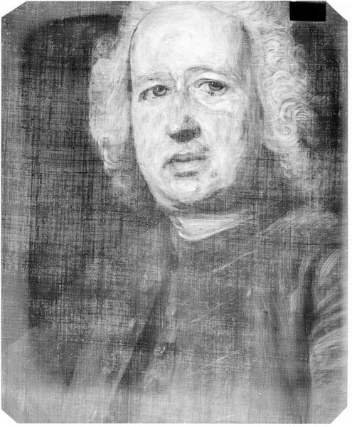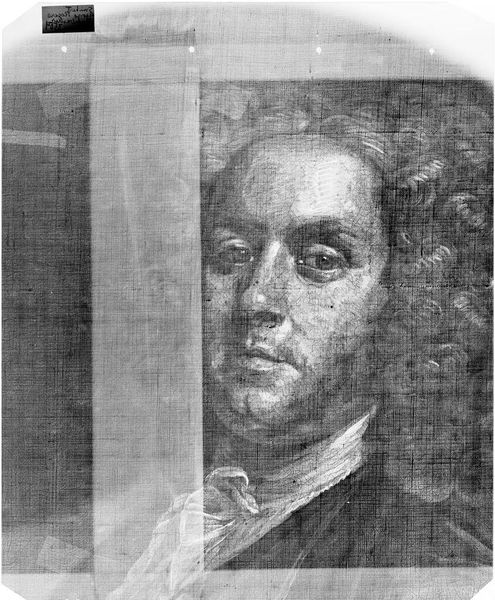 Curator: There’s an ethereal quality to this X-radiograph of John Singleton Copley's portrait "Epes Sargent Jr." Editor: Indeed, it's striking how the skeletal structure of the painting is revealed. The grid-like pattern, perhaps the canvas weave, dominates the composition. Curator: Understanding Sargent's socio-political standing is key. As a merchant and landowner, his position reflected the colonial elite's dependence on enslaved labor and trade exploitation. Editor: The stark contrast between light and shadow accentuates the subject's face, drawing attention to the formal elements of portraiture even within this radiographic view. Curator: The transparency achieved through the radiograph complicates traditional notions of portraiture, hinting at the hidden histories embedded within representations of power. It invites us to consider the layers of meaning we assign to images. Editor: The ghostly depiction serves as a potent reminder that even seemingly solid objects are composed of impermanent forms, a fascinating interplay of visibility and invisibility.