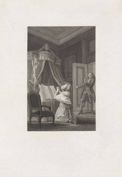 This anonymous drawing, titled 'In 't Jaar 1573,' presents a stark interior scene in pen and grey ink. The setting evokes a domestic space, perhaps a bedchamber, with a woman seated and a man entering with children. The date in the title, 1573, is a crucial clue. The Netherlands was then in the throes of the Eighty Years' War against Spanish rule. This context transforms our reading of the image. The barred window and somber atmosphere hint at the anxieties of the time. Is this a scene of refuge, or perhaps of confinement? The man's presence could signify either protection or intrusion. Historical sources, such as contemporary chronicles and pamphlets, would shed light on daily life during this turbulent period, informing our understanding of the artwork. The Rijksmuseum itself, as an institution, plays a role in shaping how we interpret this glimpse into the past, framing it within a narrative of Dutch history and identity. Art, like this drawing, is never just an aesthetic object; it's a product of, and a commentary on, its world.