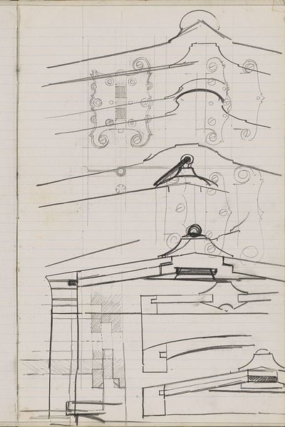This drawing, Architecturale details, was made by Gerrit Willem Dijsselhof, we don't know exactly when, but it's a really fascinating look into how an artist thinks through a problem. Dijsselhof uses a very limited palette, just ink on paper, which gives the drawing a stark, almost architectural feel, even though it's not really architecture. Look at the way the lines vary, sometimes thick and confident, sometimes thin and hesitant. It’s like Dijsselhof is feeling his way through the design, exploring different possibilities. The paper itself is lined, like a notebook page, which adds to the sense of this being a work in progress, a sketch rather than a finished piece. The little flourishes of detail, like the curves and circles, add a touch of playfulness to the otherwise rigorous geometry. It reminds me a little of the early sketches of Hilma af Klint, though much more grounded in the everyday. It's a reminder that even the most functional-seeming art can be full of imagination and wonder.