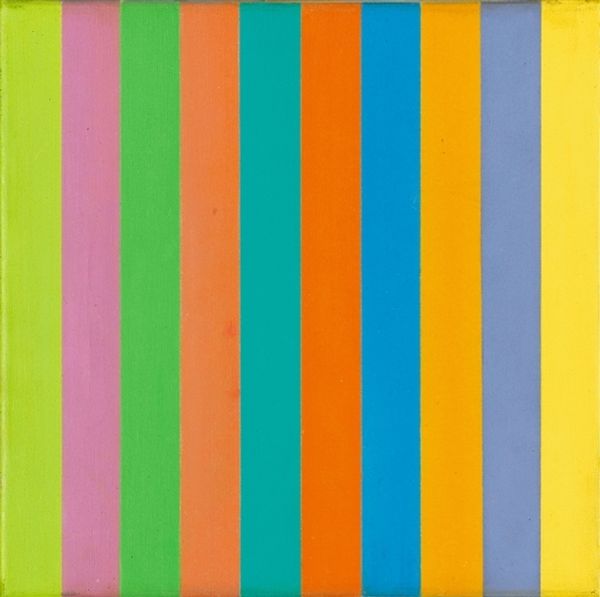 Ellsworth Kelly made this "Spectrum IV" by arranging strips of painted colors. Look at how each color has its own space, but they all line up together. The surface isn’t trying to trick you with illusions or hidden brushstrokes. What you see is what you get: pure color. Notice how the edges of each panel are so clean and precise. Kelly was all about making the paint feel flat and even, almost like the colors were printed on. There's a certain coolness to this, but it also invites you to really focus on the subtle differences between each color. It reminds me a bit of Josef Albers’ work with color interactions, but Kelly takes it to another level with the physical construction of the painting. It’s like he's saying, "Here are the colors, now go figure out how they make you feel." And that’s where the fun begins!