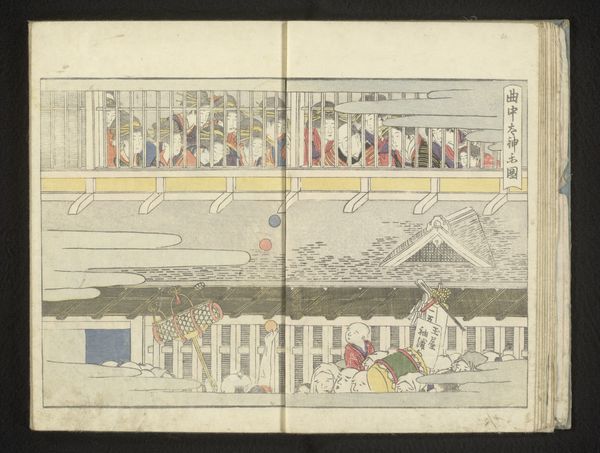 Kitagawa Utamaro’s woodblock print depicts a group of figures enjoying the full moon from a balcony. Made in Japan during the Edo period, this print offers a glimpse into the leisure activities of the urban population and the cultural significance of moon-viewing. During this period, Japan experienced economic growth and urbanization, which led to the rise of a merchant class and the development of a vibrant urban culture. This print reflects this shift, depicting a scene of entertainment and social interaction in a prosperous setting. Utamaro was a leading artist of the Ukiyo-e style, which focused on capturing the fleeting pleasures of everyday life. His prints often featured beautiful women, actors, and scenes from popular entertainment districts. To understand the social dynamics of this print, we can look to historical documents, literature, and other artworks from the Edo period. These resources can shed light on the cultural values, social customs, and artistic conventions that shaped Utamaro's work.
