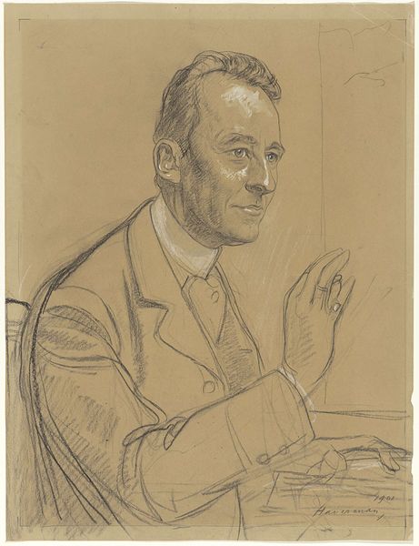 Curator: I’m immediately drawn to the textural quality of this portrait. It’s predominantly soft and a bit melancholy, really making me feel the subject's weight, you know? Editor: Agreed. Let's set the stage. We are looking at David Burliuk’s 1932 “Portrait of Sergei Eisenstein.” Burliuk was deeply invested in exploring the materiality of art, evident in his choice of pencil to depict the renowned Soviet filmmaker during a period of intense political and artistic scrutiny. Curator: The visible pencil strokes across the page—the hatch marks and layering—reveal so much about the artist's hand and process, giving it an accessible quality despite its famous subject. How interesting that he'd use these more humble means to represent such a high-profile individual! Editor: Absolutely, and that very tension, between the accessible medium and the towering figure of Eisenstein, opens up crucial questions. This portrait wasn't created in a vacuum; the USSR was undergoing immense change. I think examining Burliuk's materials alongside the political landscape provides context for the art and how people might have seen it then. Curator: Interesting... For me, the beauty resides in those tactile qualities, like how Burliuk suggests light on the face simply by varying the pressure of the pencil. It's such a manual, process-oriented way of creating depth and shadow. He renders a three-dimensional image on a two-dimensional surface via what you could call 'labor.' Editor: Thinking about the labor, too, leads me to question: Who was this portrait for, and how might it have functioned politically? Eisenstein faced censure at different moments for alleged formalism and 'insufficient' adherence to socialist realism. Could Burliuk's 'realistic' portrayal be a gesture of solidarity, and perhaps defiance through technique itself? It's all very relevant and layered. Curator: Indeed. Ultimately, the dialogue between art, craft, and labor really resonate here, it highlights those intrinsic qualities we may normally ignore when just experiencing the portrait at a glance. Editor: Yes, looking at this work, particularly its medium and when and by whom it was crafted, makes you wonder how its social and cultural implications still play out today. It’s a conversation starter!