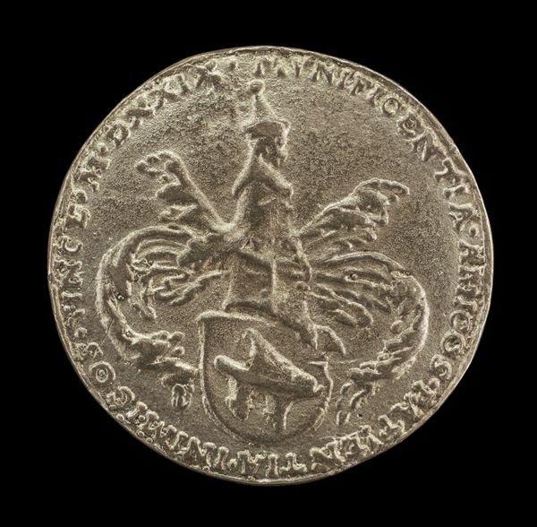 This silver medal, created by Johann Bartholomäus Braun, presents three shields arranged in a triangular composition, each meticulously engraved with distinct heraldic symbols. The textured surface and the interplay of light and shadow give the piece a tangible depth. The arrangement of these shields isn't merely decorative; it speaks to a structured hierarchy. The dominant shield at the apex, adorned with intricate details, suggests lineage and power. The two shields beneath, each with its own unique emblems, introduce a dimension of duality, perhaps reflecting alliances or unions. The dates 1645 and 1667, inscribed near the base, ground the artwork in a specific historical context. Braun's work is more than a display of heraldry; it's a study in symbolic representation, where each element contributes to a larger narrative about identity, relationships, and time. The circular form of the medal reinforces a sense of unity, encapsulating these diverse elements within a singular, cohesive frame.