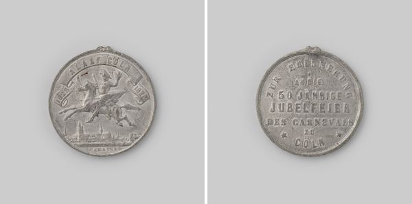 This is a silver medal by Johannes Petrus Schouberg commemorating the inauguration of Willem III as King of the Netherlands. While seemingly a simple commemorative object, it encapsulates the complex dynamics of 19th-century Dutch society. Consider the imagery: a crown, crossed swords, and an open book, likely representing the constitution, framed by laurel wreaths, symbols traditionally associated with victory and honor. These symbols are not neutral; they speak to power, authority, and the legacy of Dutch royalty. The medal served not just as a souvenir but as a potent reminder of the established order and the king's role within it. Who was included and excluded in this representation of the kingdom? What about the voices of those who may have questioned or resisted the monarchy? Consider how this medal, in its creation and distribution, helped to shape a shared sense of national identity, one that celebrated unity and allegiance to the crown, while perhaps obscuring other, more complex realities.