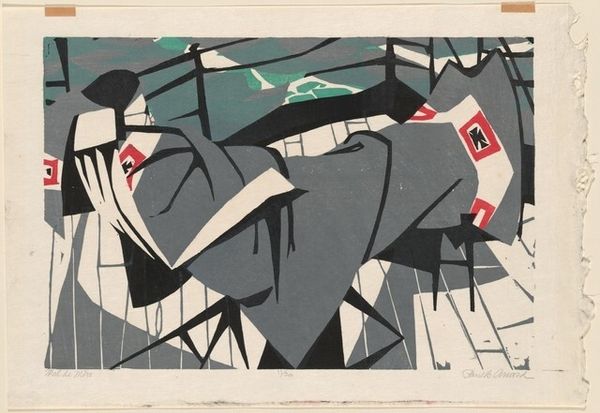 Joan Grant made this untitled abstract print sometime in the mid 20th Century, and it’s a playful exploration of shape and color, isn’t it? You can almost feel her process, that joyful wrestling with forms, the same way you might dance with a partner who keeps changing the steps. Check out how Grant uses a limited palette of muted greens, pinks, and purples. These colors don’t shout; they whisper, creating a sense of calm, like a hazy memory. Notice those linear marks in the bottom left, like the strokes of a child’s crayon, and how they add texture and depth to the composition. It’s this contrast between the geometric shapes and the handmade marks that makes the piece so intriguing. This piece reminds me of early work by someone like Patrick Heron, who shared the same interest in semi-abstracted forms and modernist colour combinations. Like Heron, Grant invites us to see the world anew, not as it is, but as it could be. It’s a conversation, an invitation to imagine beyond the surface, which I think is what all good art is about.