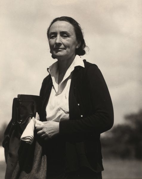 This black and white photograph titled, Georgia O'Keeffe, was captured by Alfred Stieglitz. Look closely at the portrait, and you'll notice the stark contrast between the dark vest and the white blouse. The way O’Keeffe holds the collar suggests both vulnerability and strength. This tension is further emphasized by the unforgiving light that captures every detail of her face. Stieglitz, deeply invested in notions of truth to materials, used photography as a medium to probe the essence of his subjects. Here, the act of revelation is not just about representation. It's also about engaging with the very structure of vision. Note how Stieglitz uses light and shadow not just to illuminate but to sculpt O'Keeffe’s form, inviting us to consider how the interplay between presence and absence shapes our perception. This photograph isn't a mere likeness; it’s a complex study in form, power, and the subtle language of seeing.