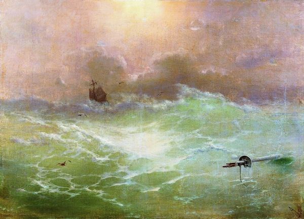 Editor: Looking at "Sea View," painted in 1895 by Ivan Aivazovsky with oil paints, I'm struck by its turbulent energy, almost like a raw, untamed force on the canvas. The seascape feels both powerful and overwhelming. How do you interpret this work? Curator: It's a potent image, isn’t it? For me, Aivazovsky’s seascapes are more than just representations of the sea; they’re potent expressions of Romantic ideals, particularly the sublime. Consider the social context. Russia in the late 19th century was undergoing massive social upheaval. These paintings offer an escape, a space for contemplating nature's immense power and, by contrast, humanity’s relative insignificance. But also think about access - who would have the leisure time and financial means to contemplate such images, or access the seaside for that matter? Editor: That's fascinating! So, the ‘sublime’ is connected to ideas of power and social escape? Curator: Precisely. And the sea itself can be seen as a metaphor, a symbol of both freedom and danger, reflecting perhaps the shifting sands of Russian society at the time. Think about the light in this painting too. Does it strike you as naturalistic, or something else? Editor: Now that you point it out, the light does seem heightened, almost theatrical. Is that also part of the Romantic ideal? Curator: Absolutely. It reinforces the drama, the emotional impact. And consider the absence of figures. Who gets to experience and benefit from this vision of untamed beauty, and who is excluded? That's a question worth considering. Editor: It gives me a whole new perspective on the piece! Curator: Art enables this dialogue between past and present, between aesthetics and critical consciousness. And sometimes the questions it raises are as valuable as the answers we think we find. Editor: Thank you, I will remember that in the future. I see it as much more than 'just' a seascape now.