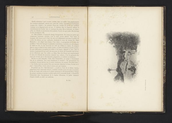 Curator: Look at this captivating image from before 1866, a gelatin-silver print titled "The Jungfrau Joch" by Ernest Edwards. It appears as part of an opened book. Editor: Wow, it’s stark! A monochromatic dreamscape, almost haunting in its simplicity. I feel the bite of the wind just looking at that imposing mountainside. It’s like a visual poem about the sublime. Curator: Absolutely, and it’s crucial to see this photograph within its historical context. In the mid-19th century, mountaineering was becoming increasingly popular among the European elite. This photograph captures not only the landscape itself, but also the spirit of exploration, of conquering nature that was so popular amongst wealthy white Europeans at the time. Edwards himself contributed greatly to discourses surrounding British national identity, class dynamics, race, and gender roles of the period, through visual media. Editor: The open book format is doing something to me. It gives the image an intimate feel. It’s as if we're intruding on a private meditation or maybe flipping through a seasoned explorer’s diary? All that rock-face just feels…primordial, maybe even challenging ideas of gender roles at the time! Curator: Precisely. Photography itself was still a relatively new medium at this point. This work can be viewed through a lens of colonialism, especially how visual art reinforced dominance over nature and "other" cultures, positioning photography as a scientific tool of exploration but also a technology through which these systems of oppression could be perpetrated. This image can be interrogated as a commentary on 19th-century scientific advancement intertwined with capitalist ideals. Editor: All this intellectualizing gives me a headache. I will say this photograph feels like the quiet before a storm, both literally and metaphorically. Curator: Considering all those nuances helps us see beyond its initial aesthetic appeal to understand its historical implications, challenging dominant ideologies embedded within the work, in order to invite critical engagement with intersectional themes related to identity. Editor: So true. I mean it’s like looking at a piece of history through a glacier's lens. It's not just about what’s there, but also about what it suggests and signifies through the filters of contemporary socio-political critique. Curator: Indeed. "The Jungfrau Joch," far more than just a landscape, encapsulates a complex web of societal dynamics of its time, offering a critical lens through which we view intersectional narratives in visual media, then and now.