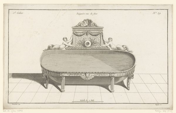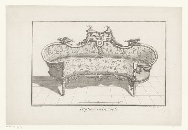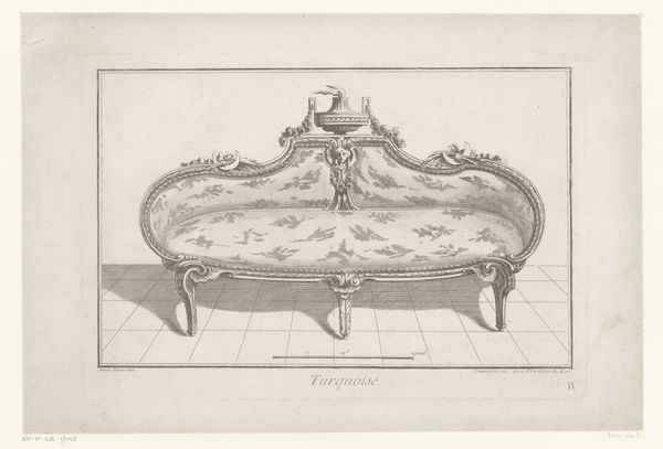 This Sofa or ‘Ottomane Ceintree’ as it is described in the print’s title, was made in France, in the 1700s. The print is the work of an anonymous designer. At this time, furniture design was becoming increasingly formalized through institutions like the French Royal Academy of Painting and Sculpture, which emphasized the importance of drawing and design in the creation of luxury goods. The sofa's elegant lines and delicate ornamentation reflect the refined tastes of the French aristocracy, who were the primary consumers of such items. But we can see that the printmaker has also included dimensions and a scale to the sofa, perhaps indicating that prints like this were used as a means of communicating design ideas to a wider audience of craftsmen and manufacturers beyond the court. To fully understand the social and cultural context of this print, we can look at sources such as period inventories, trade records, and design manuals to reveal the complex networks of production and consumption that shaped the material culture of 18th-century France.