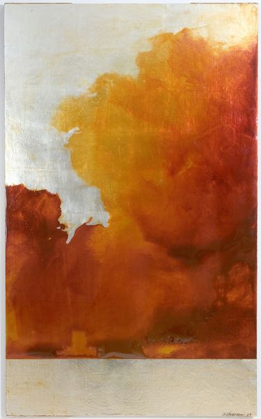 Editor: We're looking at Mark Rothko's "No. 24" from 1949, an oil on canvas work. There’s a striking contrast between the large, somewhat somber green rectangle and the surrounding hazy oranges. It feels… unbalanced. What do you make of this piece? Curator: The apparent imbalance is key. Rothko, and the Abstract Expressionists in general, grappled with conveying emotional truths in the post-war period. Consider the context: anxieties surrounding the Cold War, the aftermath of unprecedented destruction, the crisis of meaning. How could traditional artistic forms express such profound disruption? Editor: So, the abstraction reflects the disruption? Curator: Precisely. Think of museums as cultural arbiters during this period. Institutions initially resisted Abstract Expressionism, deeming it non-representational and, therefore, not ‘art’ in a conventional sense. But figures like Peggy Guggenheim and Clement Greenberg championed these artists, changing the public's perception and, significantly, museum collecting habits. Editor: That's fascinating! So, the shift wasn't just artistic; it was institutional, too. I suppose I hadn't considered the museums as active participants in deciding what gets considered important. Curator: Exactly. Furthermore, note how Rothko uses color not just as hue but as a force. The orange isn’t merely “orange”; it feels like suppressed energy trying to break through the weight of the green. Editor: I do see that. Looking at it knowing that makes me consider museums' power now to include diverse art! Curator: Indeed, art history isn’t just about the art itself; it’s about the entire network of people and places that create and shape its meaning. A dynamic relationship!
