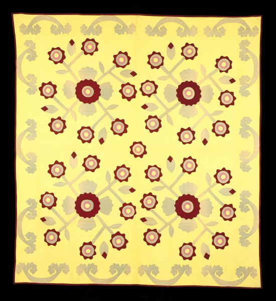 This vibrant shawl, crafted by an anonymous artist, dazzles with its field of floral motifs against a deep magenta ground. These blossoms, meticulously arranged, are not merely decorative; they resonate with cultural memories. The flower, a symbol of beauty and transience, has long been employed across cultures to evoke sentiments of renewal and the ephemeral nature of life. Think of Botticelli's "Primavera," where flowers herald the arrival of spring, or the vanitas paintings, where wilting blooms remind us of mortality. These motifs tap into a collective understanding, a shared human experience of life's cycles. The repetition of floral patterns can stir a sense of rhythm, inviting the viewer into a meditative state. This visual echo resonates deeply, engaging our subconscious, reminding us of the endless patterns of nature, and inviting a dialogue between the eye and the soul. This shawl is a testament to how symbols persist, their forms evolving, yet their essence enduring.