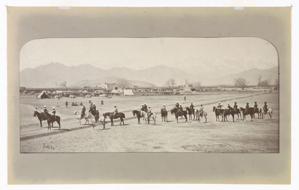 This landscape, taken in Iran by Antoine Sevruguin, is a photograph printed on paper, probably albumen. As a process, photography is deeply tied to the rise of industrial capitalism. While it doesn't require a factory, it does rely on a highly refined division of labor in manufacturing the equipment and materials needed for the picture to be made. The print’s sepia tone results from chemical reactions integral to the developing process, a form of alchemy that was quite new at the time, and speaks to the material conditions of its production. The scene itself depicts a caravan of working animals, pausing on their journey. The photo is a slice of life that depends on animal labor. It asks us to consider the relationship between the individuals who owned the animals, and the photographer who may or may not have been among the landed gentry. Sevruguin was known for his ethnographic portraits, but here, in this landscape, it is possible to see the image as bound up with social and economic factors. This challenges any rigid separation between documentary photography and art.