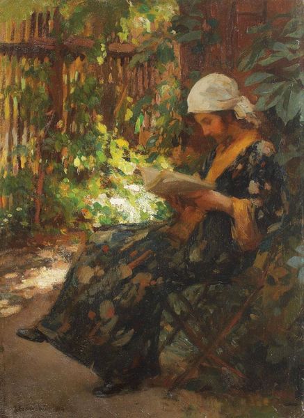 Konstantin Korovin captured this scene of leisure with oil on canvas. The loose brushwork and bright palette places this work within the tradition of Russian Impressionism, a movement that sought to capture fleeting moments and subjective experience. Painted at a time of social change in Russia, Korovin's idyllic image seems to deliberately avoid any social commentary. The painting is less concerned with reflecting social realities and more interested in aesthetic experience. The model’s leisurely pose and fashionable attire suggests an upper-class lifestyle, seemingly untouched by the political unrest brewing in the country at the turn of the century. Yet, it can be argued that this focus on beauty and personal experience was itself a statement. By turning away from the strictures of social realism, Korovin and his contemporaries asserted the importance of individual vision. To understand this art, one must look at the institutions that supported it, the artistic debates of the time, and the social context in which it was created.