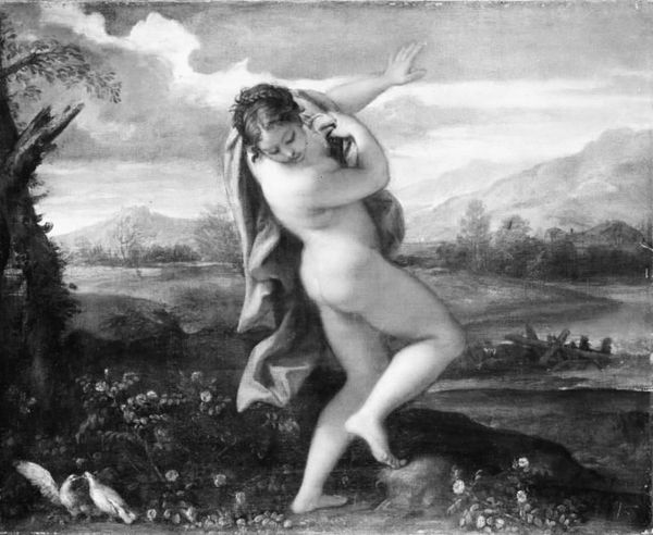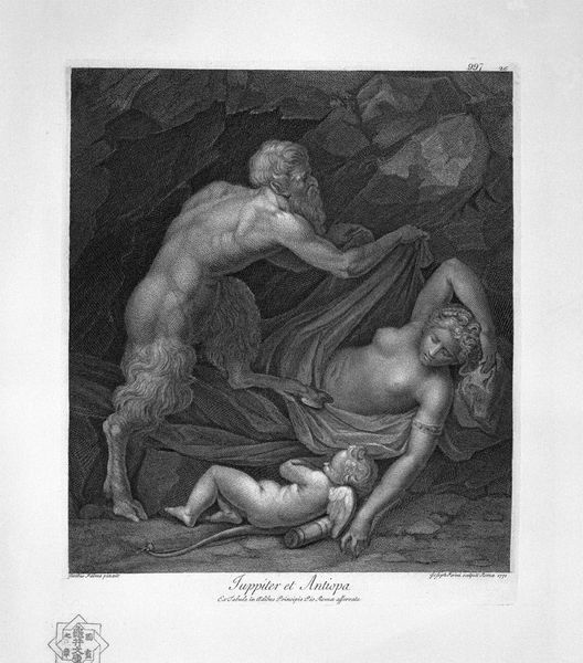 Editor: Nicolaas Verkolje's "Faun and Nymph," created in 1707, a stunning oil on wood, it strikes me as quite a playful, almost mischievous scene. The nymph reclines while being attended to, as a faun gestures towards a putto in mid-air. What's your read on this piece? Curator: Well, seeing this through a historical lens, this piece exemplifies the Baroque fascination with mythology and allegory, but it also reveals how such themes functioned within specific social contexts. Do you see how the idyllic landscape serves less as a representation of nature itself and more as a stage? Editor: A stage, yes I see what you mean. A backdrop for this encounter to take place, and for us to view it, as though the scene is set for us. How does that setting relate to how art was being received back then? Curator: Exactly! This kind of carefully constructed pastoral scene catered to the aristocratic taste of the time. The wealthy were very keen on artworks reflecting power. Now, consider the figures themselves. They are both objectified, yet seemingly idealized too? Editor: Definitely, and this also feeds into what makes it feel staged. The nude nymph especially feels like a display of wealth and privilege, but she's presented in such a way to look innocent and romantic? Curator: Precisely. It points to a certain ownership – not just of the artwork, but perhaps of the narrative and the body itself. The question for me is how were similar mythological scenes displayed to further highlight such power? Where were they hung? And what messages would guests interpret upon viewing this artwork in its designed setting? Editor: That's so fascinating! I never considered the actual spaces they were in, the visual impact they had beyond just the image itself. It changes everything about how I view pieces like this now. Curator: Agreed. Context really is everything.