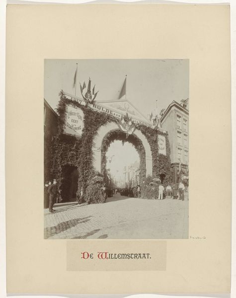 This photograph, taken by Henri de Louw in 1887, captures a temporary structure erected during the April Feasts in Amsterdam. While the photograph itself is a product of industrial processes of the late 19th century, the "Ereboog," or triumphal arch, is a fascinating example of ephemeral folk architecture. The arch, constructed from timber and plaster, is decorated with greenery and flags. It imitates classical forms, but its handmade quality is evident. What does it tell us about the socio-economic conditions that produced it? The materials themselves - wood and plaster - are relatively inexpensive, suggesting a community effort. The arch transforms the urban landscape. It’s about civic pride, but also about labor. Think of the work involved in gathering the materials, building the structure, and decorating it. It stands as a testament to the collective labor and resourcefulness of the community. Photographs like this remind us that everyday materials and forms of making are just as culturally significant as those found in museums.