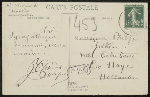 Eugénie Clapier-Houchart wrote this postcard to Philip Zilcken at an unknown date. It reveals insights into the social circles and artistic networks of the time. Clapier-Houchart addresses Zilcken as "chers et excellents amis," suggesting a close, intimate friendship. Her inquiry about old stamps from Holland or its islands for a friend's collection speaks to the cultural interest in collecting and preserving artifacts from different regions, reflecting a desire to connect with and document diverse cultures. Clapier-Houchart closes the postcard with "Mes souhaits affectueux à toute la maison," conveying a warm, familial tone. It reflects the social etiquette and values of the time, where personal connections and maintaining relationships were highly valued. This postcard provides a glimpse into the lives and interactions of individuals within artistic and intellectual circles, reminding us of the emotional and personal dimensions of historical exchanges.