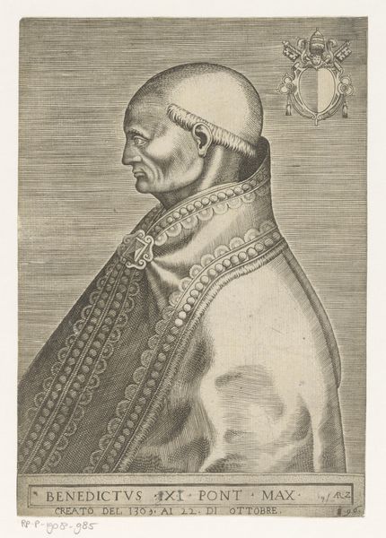 Curator: Sober and contained, almost severe—that’s the feeling I get right away from this portrait. What's your first take? Editor: Brooding, maybe even a little bit mournful. There's something vulnerable in that averted gaze. He feels somehow outside of time. Curator: It’s fascinating how a few lines on paper can evoke so much. This is a woodcut from 1582 by Melchior Lorck. It's called "Circular medallion with half-length portrait of unbearded man wearing a calotte and an earring, with a fur draped over his shoulder; profile towards the right". It’s currently housed at the SMK, the Statens Museum for Kunst. Editor: "Calotte," earring, fur... This sounds a bit theatrical! Curator: Portraiture during the late Renaissance was very much about displaying status, you're not wrong! Lorck’s interesting here. He traveled extensively, particularly in the Ottoman Empire. He became fascinated by their customs, clothing, and faces of course. Editor: You know, it's the gaze more than anything that holds my attention. What stories could this man tell? He’s resisting a reading of the face. You almost want to turn his head to catch his eye. Curator: And yet the face is meticulously rendered in this extremely unforgiving medium of woodcut. There's the tension—between revealing and concealing identity. What might surprise our listeners is how common, inexpensive, and reproducible the print medium was becoming! And still, portraiture served a role of propaganda and power in its relative abundance. Editor: Exactly. And there is some kind of propaganda there - to render someone outside his society with that dignity! Still, if one could just climb into that dark line of his, walk for days. It's all a bit unresolved in the negative spaces surrounding his sharpest features - that eye and that neck. What's he turning from? What’s about to happen next in that furrow of his brow? Curator: Perhaps what fascinates you both are the questions around identity that Lorck seems to imply with the piece. How portraits like this reflected social position. Editor: It’s a study in controlled emotions for me - an individual at a crossroad that we have had to piece together 500 years later. It makes one think of time and value both as social constructs and as individual experiences. Curator: Thank you. That's definitely a thoughtful end note.