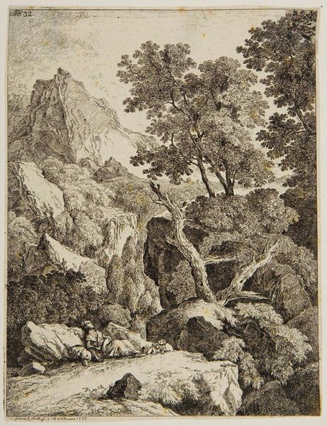 Editor: Here we have Hanns Lautensack's "A Mill by a River, with a Bridge Leading to a Citadel," created around 1553. The etching is incredibly detailed. What strikes you about this piece? Curator: Consider the material realities. The printmaking process itself—the labor involved in etching the metal plate, the accessibility of prints to a wider audience than paintings. How does this medium democratize landscape imagery? Editor: That's fascinating. So, the printmaking process itself becomes part of the story, shifting focus from just the scene depicted. Curator: Exactly. It moves beyond mere representation. We must ask: who had access to this image, and how did its creation and distribution impact the understanding of landscape at the time?