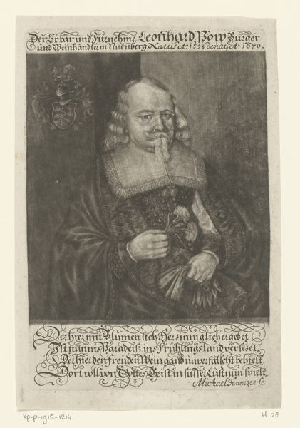 Georg Fennitzer made this portrait of Jakob Bitelmar using etching sometime around the late 17th or early 18th century. The coat of arms in the upper right corner—a heraldic symbol representing family lineage—reveals a connection to ancestral valor and status. Consider how such emblems appear across cultures, echoing through time, from medieval tapestries to modern corporate logos. They represent a primal need to belong and to stake a claim in the world. The wings that adorn the coat of arms can be traced back to ancient Greek depictions of Hermes or Roman depictions of Victoria. This symbol has undergone countless transformations, yet its essence remains: the aspiration to rise above the earthly realm. Such visual motifs tap into our collective memory, stirring subconscious desires for recognition. It is a potent image that continues to engage us, reminding us of our intrinsic, historical connection to symbols of status and aspiration.