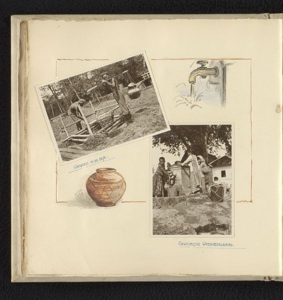 This collection of photographs titled "Verschillende werkzaamheden te Grobogan" offers a glimpse into various activities, likely in Grobogan, taken by an anonymous photographer. Focus on the image of figures seated around a fire. This intimate grouping recalls age-old communal rituals. Fire, a symbol of warmth, light, and transformation, has been central to human gatherings across cultures and epochs, from ancient hearths to contemporary campfires. The posture of the figures, backs turned, evokes a sense of introspection and shared experience. Think of similar scenes depicted throughout history—the three witches in Macbeth gathered around a cauldron, or holy figures in prayer. These visual echoes resonate with our collective memory. Fire as a symbolic motif recurs, its meaning shifting yet ever-present, revealing how fundamental human experiences are continuously reinterpreted. The image triggers primal emotional responses associated with safety, community, and shared storytelling. This cyclical representation demonstrates the endurance of symbols across time.