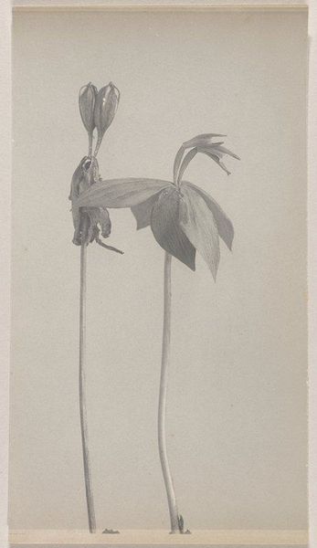 Editor: Here we have Edwin Hale Lincoln's 1931 gelatin-silver print, "Cypripedium reginae - The Queen of the Moccasin Flowers," from the Minneapolis Institute of Art's collection. The monochromatic palette and the tight cropping create such an intimate and focused perspective. What catches your eye in this image? Curator: Formally, the interplay of light and shadow sculpts the composition. Note how Lincoln meticulously renders the textures – the velvety smoothness of the petals juxtaposed against the pronounced venation of the leaves. Observe also the arrangement: a pyramidal structure lends a sense of classical stability. Do you find any tension in this structured presentation? Editor: Now that you mention it, yes. There's a rigid stillness. Even though it’s a flower, it feels like a formal portrait. Curator: Precisely. Consider how the limited tonal range abstracts the subject. It reduces the flowers and foliage to a study of form. The emphasis shifts from botanical documentation to an exploration of shape, light, and surface. The frame acts as a sort of stage. What effect does that staging have on you, the viewer? Editor: It detaches the plant from nature. I see the subject itself as being about the form. Thank you; I hadn't quite noticed the way this image made me separate the flower from my expectations. Curator: It reveals that even a photograph can prioritize intrinsic artistic qualities. An appreciation for art, regardless of representation. Editor: Right, so instead of it being a botanical study, the picture becomes more of an essay in contrast. Curator: Indeed, Lincoln transforms a botanical subject into an aesthetic exercise. Editor: I see that now. Focusing on the structural elements gives me a new angle from which to approach photography as an art form.
