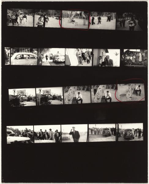 This is Robert Frank's "Guggenheim 345--Esso oil refinery, Baton Rouge, Louisiana," and it's a strip of black and white photographs that seems to capture a moment, or rather, a series of moments, somewhere in Louisiana. What grabs me first is the texture of this film strip. It's grainy, raw, and unapologetically real. The images aren't pristine, they're a bit blurry, a bit harsh, but that's what makes them so compelling. You can almost feel the grit and heat of the place. Look at how the light flares and bleeds into the shadows, creating these stark contrasts. There is a tension between the mechanical, industrial landscape and the human figures scattered throughout. It is like each frame contains a story, or a fragment of one. Frank's work reminds me a bit of Walker Evans, in their shared commitment to capturing the American experience, but Frank has a rawness, an edge that's all his own. I think art is about this ongoing conversation, a back-and-forth between artists across time and space, and Frank definitely has something important to say.