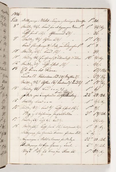 Curator: This artwork by Martinus Rørbye, simply titled "Regnskab 1847", made with ink on paper, provides us with insight into daily commerce in the mid-19th century. Editor: My initial impression is the intimacy conveyed through its small scale and dense inscription. It feels very immediate, almost tactile. Curator: Absolutely. Examining this ledger beyond its formal qualities allows us to see it as a cultural object reflecting societal norms and hierarchies. It offers glimpses into the economy of the time. The carefully inscribed entries provide context to understand the transactions and lives touched by this "Regnskab," illuminating socio-economic realities and the power dynamics implicit in even simple transactions. Editor: True, the neat rows and meticulous penmanship establish a structured, almost rigid visual rhythm, hinting at the orderliness of mercantile bookkeeping, and visually establishing both order and value. I can see that the subtle variations in the thickness of the lines bring a certain texture and depth to the two-dimensional plane, as well. Curator: The materials – ink on paper – contribute to the historical narrative as well, revealing the materiality of everyday life from this time period. Each notation offers small details, acting almost as data points within larger systems. Consider this account book as part of a broader material history that challenges the marginalization of such ephemera by connecting individual stories to widespread, documented societal practices. Editor: So, rather than merely dry documentation, you see the ledger as containing expressive form. These carefully drawn notations offer us today a graphic harmony which speaks, perhaps unconsciously, about organization and a balance in visual tension. Even though there is little physical action visible, the visual form, or graphic content, tells a fuller story through the medium itself. Curator: Precisely. What begins as financial accounting turns into evidence of its historical context, revealing deeper truths when decoded within the frameworks of contemporary society. Editor: I suppose when looked at it in that way, it changes everything about it from merely utilitarian accounting to an expression of culture itself. Curator: I'm glad we could offer that lens into how to view "Regnskab 1847". Editor: Yes, seeing the work from your perspective enriches my experience too!
