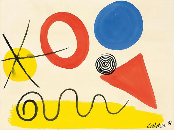 'Presenza Grafica' is a print by Alexander Calder, created in the middle of the 20th century. Calder was an American sculptor known for his invention of the mobile, a type of kinetic sculpture. The bold colors and dynamic composition of 'Presenza Grafica' reflect the artist's broader interest in movement and space. Calder moved in artistic circles that challenged traditional notions of art, and his work frequently blurred the lines between different artistic disciplines. The print displays a playful arrangement of geometric shapes and lines. The juxtaposition of the static forms with the implied motion creates visual tension. Calder's use of abstraction invites viewers to engage with the artwork on an emotional level. As Calder once said, "The underlying sense of form in my work has continually been the system of the Universe." 'Presenza Grafica' encourages an emotional engagement with the dynamic relationships between forms, while exemplifying the sense of freedom that characterized much of the art from this time period.