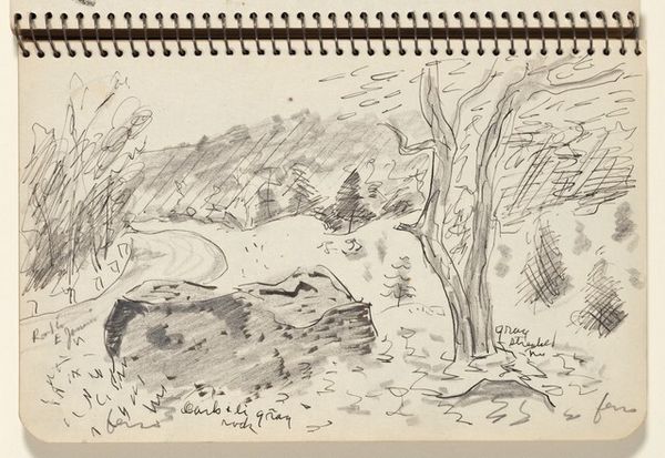 Editor: We're looking at Milton Avery’s “Top of Ball Mountain,” a pen and ink drawing from 1943, done *en plein air*. It feels immediate, almost like a visual diary entry. What strikes you when you see it? Curator: The immediacy, as you say, is crucial. But consider the context: 1943, amidst World War II. Avery, though seemingly detached in his landscape, is responding to the anxieties of his time. What does it mean to depict leisure, nature, a quiet moment, while the world is at war? Editor: So, is he offering an escape? Or perhaps making a more subtle statement? Curator: It's both, perhaps. Modernism often grappled with the tension between escapism and critique. Avery isn't making a grand political statement, but the act of choosing this subject, this style—simplified, almost childlike—is itself a quiet rebellion against the pervasive narratives of conflict. Consider how ideas around "leisure" or "nature" were culturally loaded then, just as they are now in the face of other societal pressures. Editor: I see what you mean. The figures, almost blending with the trees, could represent a yearning for simplicity, for a world untouched by the war. Curator: Precisely! And the pen and ink medium underscores this. It’s immediate, accessible. What stories might this drawing tell us about identity and the collective experience? Editor: It really does invite deeper reflection. I initially saw it as a simple landscape, but now it’s resonating with ideas of resistance and the quiet persistence of beauty amidst turmoil. Curator: It's a reminder that even seemingly simple acts of observation and creation can carry profound social and political weight, questioning dominant narratives and offering alternative visions of the world.