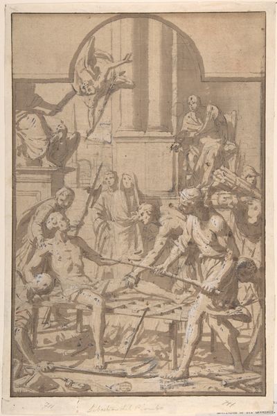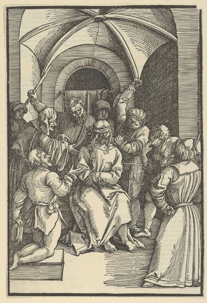 This small print, made by Georg Pencz around the mid-16th century, depicts a youthful Christ discoursing with learned doctors in the Temple. The most striking element is the radiant halo encircling Christ's head, a symbol of divine light and knowledge. The halo is an ancient motif, predating Christianity, seen in various forms across cultures to signify enlightenment or divinity. Think of the sun disks of ancient Egyptian deities, or the aureoles surrounding Buddhist figures. Over time, the halo has served as a visual shorthand for holiness, adapting to different cultural contexts yet retaining its core symbolic power. In Pencz's era, the halo was essential to distinguish holy figures, and this light around Christ is almost aggressive. The way Pencz renders the scene, with its stark contrasts, evokes not just a biblical narrative, but also the timeless struggle between youthful wisdom and established authority. This image isn't merely a depiction; it's an echo through time, demonstrating how symbols evolve, adapt, and continue to resonate within our collective memory.