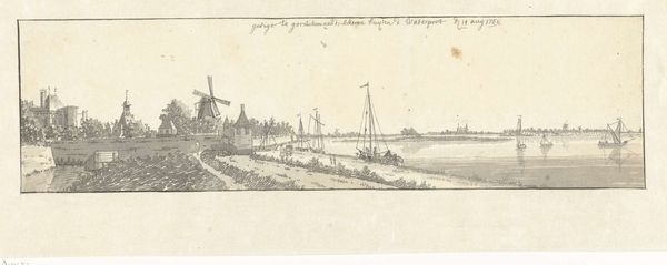 "Gezicht op de Waal met het kasteel Zuilichem," or "View of the Waal with Zuilichem Castle," is a Dutch Golden Age landscape made with pen and brown ink by Constantijn Huygens II. Huygens, born into an aristocratic family, occupied a privileged position in Dutch society, allowing him to indulge in artistic pursuits alongside his political and diplomatic career. The artwork presents a serene view of the Dutch countryside, carefully rendered with delicate lines and tonal variations. It provides a glimpse into the artist's personal experience and relationship with the natural world. The presence of the castle in the background alludes to the social structures and power dynamics of the time. Huygens was not a formal landscape artist and so this casual snapshot feels immediate and modern. Although seemingly straightforward, the drawing subtly reflects the intersection of class, landscape, and personal identity in the 17th century. Huygens was likely reflecting upon his experiences as a diplomat and government official. He develops an alternative narrative, diverging from traditional representations. The artwork reflects societal issues of its time, inviting us to contemplate the emotional and personal dimensions of the piece.