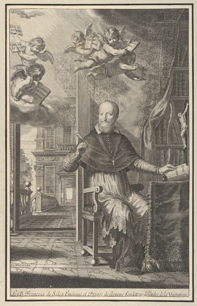 Francois de Poilly created this print of Heilige Ignatius van Loyola, the founder of the Jesuit order, sometime in the 17th century. It’s a period marked by religious conflict and the rise of powerful religious orders within the Catholic Church. This engraving captures a moment of divine inspiration. Ignatius kneels, eyes upturned toward the heavens, where angels emerge from billowing clouds. Note the open book and the globe entwined by a serpent at his side, symbols of knowledge and worldly power, now secondary to his spiritual awakening. But who was Ignatius, really? Born into Spanish nobility, he experienced a profound transformation after being wounded in battle, leading him to abandon his ambitions for military glory, dedicating himself to a life of prayer and service. The print illustrates his personal journey and the broader efforts of the Jesuits to spread Catholicism across the globe. It invites us to reflect on the intersections of faith, power, and personal transformation.
