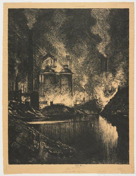 Joseph Pennell made this etching, "The Lake of Fire, Charleroi", using a monochrome palette. It’s all about mood, right? Pennell is just letting the scene emerge, bit by bit, from the darkness. The piece is built with these subtle textural shifts. Look at the heavy dark sky, and then compare it to the delicate, almost vibrating reflections in the water. You can see how the mark making is different for each element. He creates an industrial hellscape but with this sense of artistry. The small figures in the foreground are rendered so minimally but they create a point of perspective, as if we are witnesses to the scene. It reminds me of some of Goya’s darker etchings, where the process of image making becomes almost like an act of bearing witness. It really makes you think about what it means to look, and what it means to create something so compelling out of such dark material.