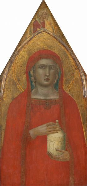 Taddeo di Bartolo painted this small panel, "Head of an Angel in Left Profile", sometime between the late 14th and early 15th century. Di Bartolo lived and worked in Siena, Italy, during a time of immense religious fervor. The Church was not only a spiritual guide but also a powerful political entity. Di Bartolo's angel, with her delicate features and serene expression, embodies an ideal of feminine beauty that was deeply intertwined with religious devotion. Angels, often depicted with pale skin and flowing hair, served as intermediaries between the divine and earthly realms. The artist, however, seems to have feminized the angel’s features, giving the figure a slightly downturned chin and full cheeks. By humanizing the angel, Di Bartolo invites us to consider the spiritual world as accessible and intimate. He encourages a personal connection with the divine, one that transcends dogma. He does this by subtly challenging the rigid boundaries of religious art, and reflecting a more inclusive and emotionally resonant understanding of faith.