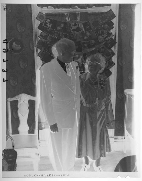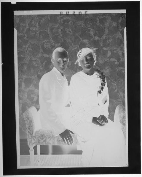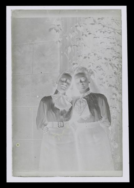 Curator: This is an untitled photograph by John Deusing, depicting two women sitting for a portrait. Its dimensions are approximately 12.7 by 10.16 centimeters. Editor: There's a dreamlike quality here, with the figures almost glowing against the darker backdrop. It feels both intimate and staged. Curator: Studio portraits like these often served as important markers of social identity and aspirations. It was a way for individuals to present a carefully constructed image to the world. Editor: Indeed. Note the choice of clothing, the jewelry. They speak to a desire for elegance, for belonging. What stories do these symbols tell about their lives and the cultural values they embraced? Curator: Absolutely, and also how the studio itself becomes a stage for projecting those values in a very controlled manner. We can see how their place in society informs every aspect of the scene. Editor: It makes me wonder about the untold stories, the lives behind these idealized visages. What were their true desires and fears? I am glad we took a look. Curator: It's a compelling reminder of the power of photography to both reveal and conceal.