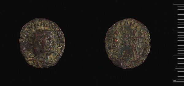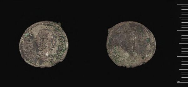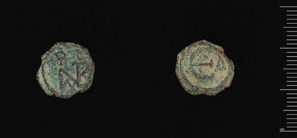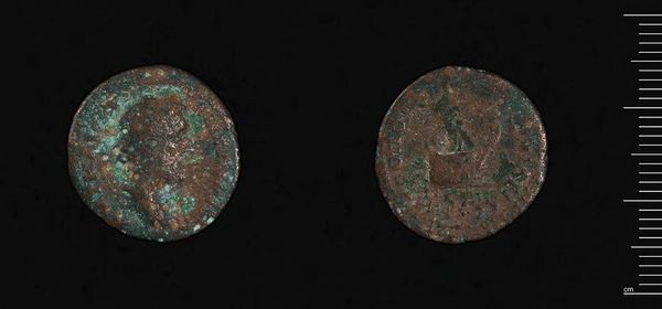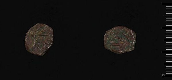 This is a Decanummium of Maurice, a bronze coin minted in Constantinople during the reign of Maurice Tiberius. Observe the coin's patinated surface, which speaks to its age and material composition. The coin's design is structured around the iconography of power and faith. The emperor's image, though worn, is framed by stylized, radial lines, creating a halo-like effect. This formal choice is not arbitrary; it reinforces the emperor's divinely sanctioned authority. On the reverse, the mark of value sits above a horizontal line. The arrangement, with its crude incisions, suggests a hierarchy of symbolic elements. This Decanummium acts as a potent signifier of the Byzantine state's economic and ideological systems. Even in its deteriorated state, the coin's formal design bears witness to the complex interplay between imperial power, religious belief, and economic function. It reminds us that even the smallest objects can carry a wealth of historical and cultural meaning.