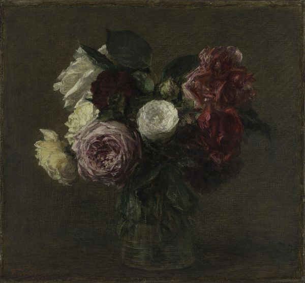 Henri Fantin-Latour made this still life painting, "Roses," with oil on canvas. This wasn't radical for the time, but the way he handled the material certainly was. Notice how the paint seems to have been applied in soft, feathery strokes. This imbues the roses with a delicate, almost ethereal quality, as if they might fade away at any moment. It's a world away from the kinds of grand history painting that were still esteemed in his day. Instead, he has focused on something modest, a display of cultivated beauty that would have been accessible to many middle-class households. While the roses might seem like a straightforward subject, the choice of flowers like these in this period speaks volumes about the burgeoning industry of floriculture and the rise of consumer culture. The painting freezes a fleeting moment in time, an everyday luxury made available through a network of labor. Considering the materials, the making, and the social context helps us understand how even a simple still life can speak to broader issues.