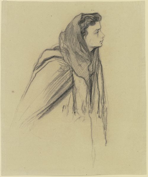 This is Charles Rochussen's pencil sketch of a woman with a cloth over her head. Rochussen, who lived from 1814 to 1894, situated himself as a genre painter and printmaker; capturing scenes of everyday life. This drawing invites us to consider the representation of women in 19th-century art. In its historical context, the depiction of a woman with her head covered prompts questions about identity, modesty, and cultural norms. Does the covering signify religious affiliation, social status, or something else entirely? How might the woman have felt being sketched? Rochussen invites us to reflect on the complex interplay between the artist's perspective, the subject's identity, and the cultural values embedded in the image. The sketch reminds us to consider the diverse experiences and representation of women throughout art history.