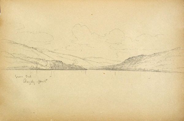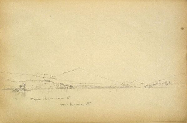 Editor: So, this is Benjamin Champney's "Lake Mooselucmaguntic, Maine." It's a small pencil drawing. It feels so… fleeting, like a memory fading at the edges. What do you see in this piece? Curator: It whispers to me of quiet mornings, perhaps. Champney, a landscape painter of his time, captures not just the scenery but the very act of seeing. The faintness almost invites us to complete the image ourselves, doesn't it? Imagine the crisp air. Does it remind you of anywhere? Editor: A little, actually! Like my family's place up in the Adirondacks. Thanks, that makes a lot of sense. Curator: Art is often about making connections, isn't it? That's what keeps it alive.
