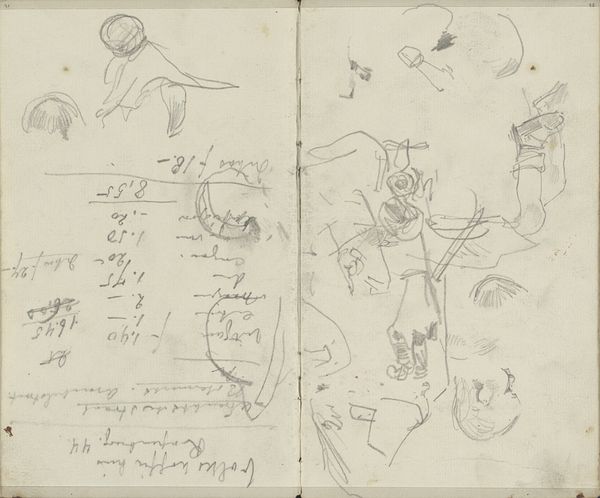 Editor: This is "Four Studies of Breton Women; Shapes and Vases" by Paul Gauguin, made with pencil around 1884 to 1888. It feels like peering into the artist's sketchbook. I wonder, what captures your attention most in this piece? Curator: Oh, the sheer intimacy of it, the fleeting quality! It's like catching a glimpse of Gauguin's thought process. He’s juggling between capturing the essence of these Breton women – their stoic grace – and playing with form in those quirky vase studies on the verso. Don’t you feel the casualness, that wonderful unfinished energy? Editor: Absolutely! It's less a formal portrait and more…an impression? A quick sketch to capture a feeling? Curator: Exactly! Think of it: Gauguin was itching to break free from the constraints of academic art at the time, craving something more…alive. These pencil lines are him searching, feeling his way towards a new way of seeing and depicting the world. Almost a visual diary, isn’t it? Editor: So, it’s not about perfect representation, but about conveying something deeper? Curator: Precisely! It’s about distilling the essence, that raw energy of a moment, whether it’s a Breton woman’s profile or the curve of a vase. It's funny to imagine him flipping the page, one side informing the other, wouldn't you agree? Almost like a visual call-and-response. Editor: It definitely makes me rethink what a finished artwork needs to be. I thought a drawing was preliminary to painting. It looks like this drawing IS the thing! Thank you, I learned so much. Curator: Me too! I've been reminded how potent unfinished thoughts can be, even if rendered in pencil!