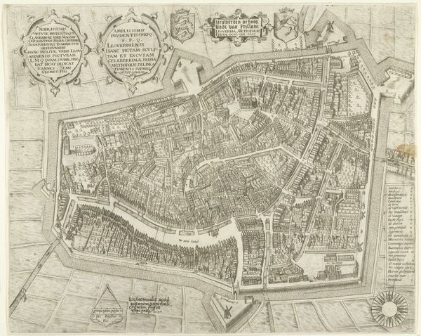 Editor: This print, "Plattegrond van Minden," was created in 1657 by Wenceslaus Hollar. It’s a remarkably detailed engraving of a city. I'm struck by how meticulously everything is rendered. How would you interpret a piece like this? Curator: From a historical perspective, prints like these served multiple purposes. Beyond simple geographical representation, they often functioned as statements of power, projecting the city's wealth, order, and defensibility. Consider the date; 1657. What larger political context might influence the way this cityscape is presented? Editor: Well, Europe was still recovering from the Thirty Years' War, so security and stability would be key. Is that why the fortifications are so prominent? Curator: Exactly. The emphasis on ramparts, moats, and strategic placement highlights the city's readiness to defend itself, reassuring both residents and potential investors. Also note how this image circulates. Who gets to own a print like this, and what does it tell them? Editor: I hadn’t considered ownership. I guess it would be the wealthy elite, who could afford to buy the print. Having such an image demonstrates their knowledge of the city and probably provides a sense of control. Curator: Precisely! Prints like these were not just decorative; they were instruments of power, influencing perceptions and reinforcing social hierarchies. It also shows the rise of cities in shaping the modern state. Editor: That's fascinating. I had never thought about cityscapes having such political weight. It is so much more than just pretty. Thank you! Curator: And thank you for reminding us that even seemingly objective representations are laden with cultural and historical significance. There's always more than meets the eye!