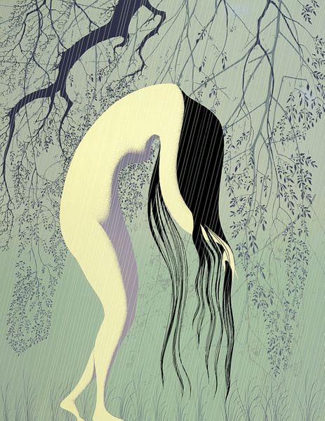 Owen Gent’s image for ‘New Scientist’ uses digital tools to achieve the kinds of textures and layering we often see in printmaking, and this feels right for a piece about the science of life and loss. There’s a beautiful sadness in this composition. The woman’s form is solid ochre, shadowed with reds and blues, but her head is cast in darkness and turned away. She holds a rose, its leaves almost black, its petals a hopeful, but fragile, red. Look closely, and you’ll see the artist has paid attention to the fall of each petal, the way they scatter like tears. In the background, an ominous shadow of another rose looms over the scene, suggesting how nature can feel indifferent to our individual grief. In this piece, Gent reminds us that art is a conversation about the human condition. I think of Paula Rego, another artist who wasn’t afraid to explore difficult and emotionally complex themes in her work.