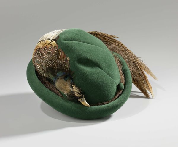 This hat, made from velvet, rabbit fur, and floral corsages, was designed by A. Jacot, who was born in 1869. The hat reflects the fashion of its time, where elaborate headwear was a symbol of status and femininity. The use of rabbit fur speaks to complex social and ethical considerations. While the hat signifies luxury, it also raises questions about animal rights and the cultural norms that normalize such practices. In terms of identity, the hat situates its wearer within a specific social class, reflecting an era where fashion was intricately tied to societal position. Its design, with delicate flowers, evokes a sense of fragility and beauty, characteristics traditionally associated with women. Yet, it also projects power and authority through its expensive materials. Ultimately, this hat serves as a poignant reminder of the intricate ways in which fashion can embody cultural values, social inequalities, and personal aspirations.