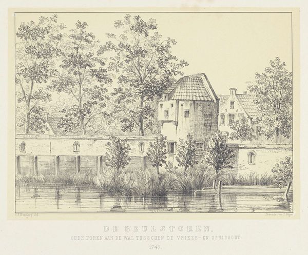 Editor: This is "Italian Villa on the Water," an etching, aquatint, engraving, and pencil drawing by Jean Vasserot from the early 19th century. I’m struck by the starkness of the architecture against the natural landscape, that almost feels like a stage set. What details stand out to you in terms of materials and their impact? Curator: It's interesting you see a "stage set." Consider the social context for intaglio prints like this; they were often commissioned or made as relatively inexpensive artworks, meant to be collected or traded. The production and accessibility of prints in the Romantic era allowed for broader consumption of images of places like Italy, right? It also shaped what aspects of Italy people got to see, framing certain picturesque views in a certain light. How do you think the layering of techniques – the etching, aquatint, engraving – influences how we perceive this place? Editor: Well, combining etching and aquatint makes sense for contrasting textures and detail, allowing for sharp architectural lines alongside soft, tonal water and foliage. Could it suggest an intended market or consumer for this particular type of work, focusing on affordability and aesthetic appeal? Curator: Exactly. Vasserot and the publisher marketed directly to travelers in need of mementos, as we can read on the imprint on the image, where it says that the view can be purchased at the Caffè degli Inglesi. That speaks directly to consumerism and the cultural interest of that period in affordable imagery depicting tourist locations. How might the act of creating multiple prints democratize the viewing and owning of art in that era? Editor: That’s interesting! Mass production meant more people could access views like this, which is still relevant in today's context of accessible art. Curator: Precisely. And perhaps reflecting on Vasserot’s intent, materials and labor, shifts our perception away from pure aesthetics and towards the means of art production, connecting us to those networks of exchange that were vital.