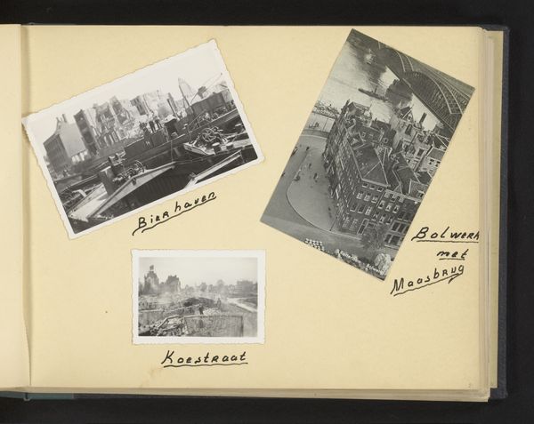Editor: Here we have "Militaire Kapel," taken around 1939-1940, an anonymous gelatin silver print currently held in the Rijksmuseum. It appears to be three photos mounted side by side in an album. It's a very matter-of-fact presentation of what I assume is a military band. How do you interpret the social context of a piece like this? Curator: Considering the time period, the stark realism documented here speaks volumes. It is not a glorious depiction of military might, but something far more quotidian, more of a record. Note the grainy texture, the album format -- this suggests a personal or institutional archive, not necessarily something meant for public consumption at the time. What effect do you think this documentation may have had? Editor: Perhaps as propaganda? To show the lighter side of military life? The mundanity of the marching band distracts from war’s reality. Curator: Potentially. However, I see a complex interaction here. While photography could be easily employed for propaganda, it also served a vital role in documenting reality. The existence of an image does not inherently confirm a singular message; the historical value increases with research. Are the musicians playing for their comrades, to boost morale during times of stress and war, or are they on parade? Knowing more would help in assessing the images. Where are they positioned, in what kind of surrounding, under whose command, and why? What feelings does this juxtaposition of private album and potential propaganda provoke? Editor: It's a reminder that even during major historical events, everyday life persists. The album format creates an intimate feel to what is usually a very public expression. Curator: Precisely. And how the framing changes how we receive these different images. It isn't as simple as declaring it propaganda. Editor: Right, seeing it through a historical lens adds depth. Thank you for clarifying that!